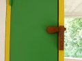Floor-to-ceiling wood panels can be open to let air in