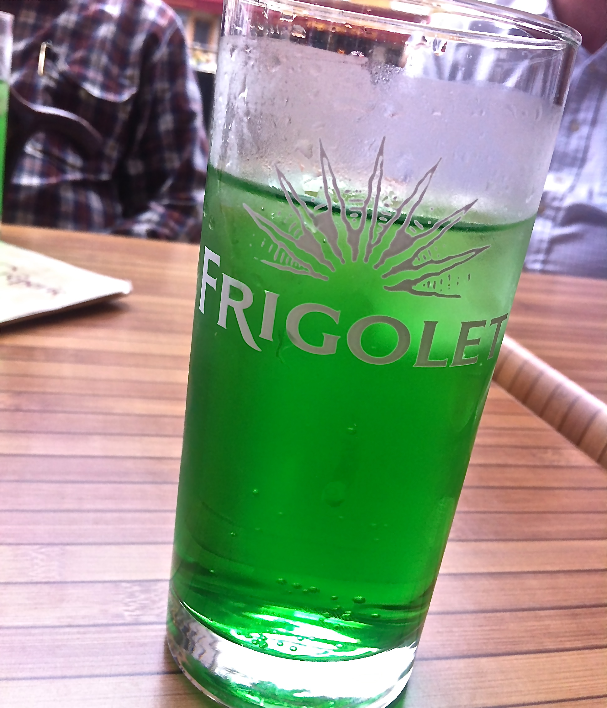 Having lived in France since the 1950s Godfather P has converted to a number of essential French ways. He and I order a ‘diabolo menthe’, mint cordial with lemonade, which, being an unreconstructed Brit, Dr K invariably dismisses as mouthwash. He has iced tea instead – which, really, is like cold dishwater.