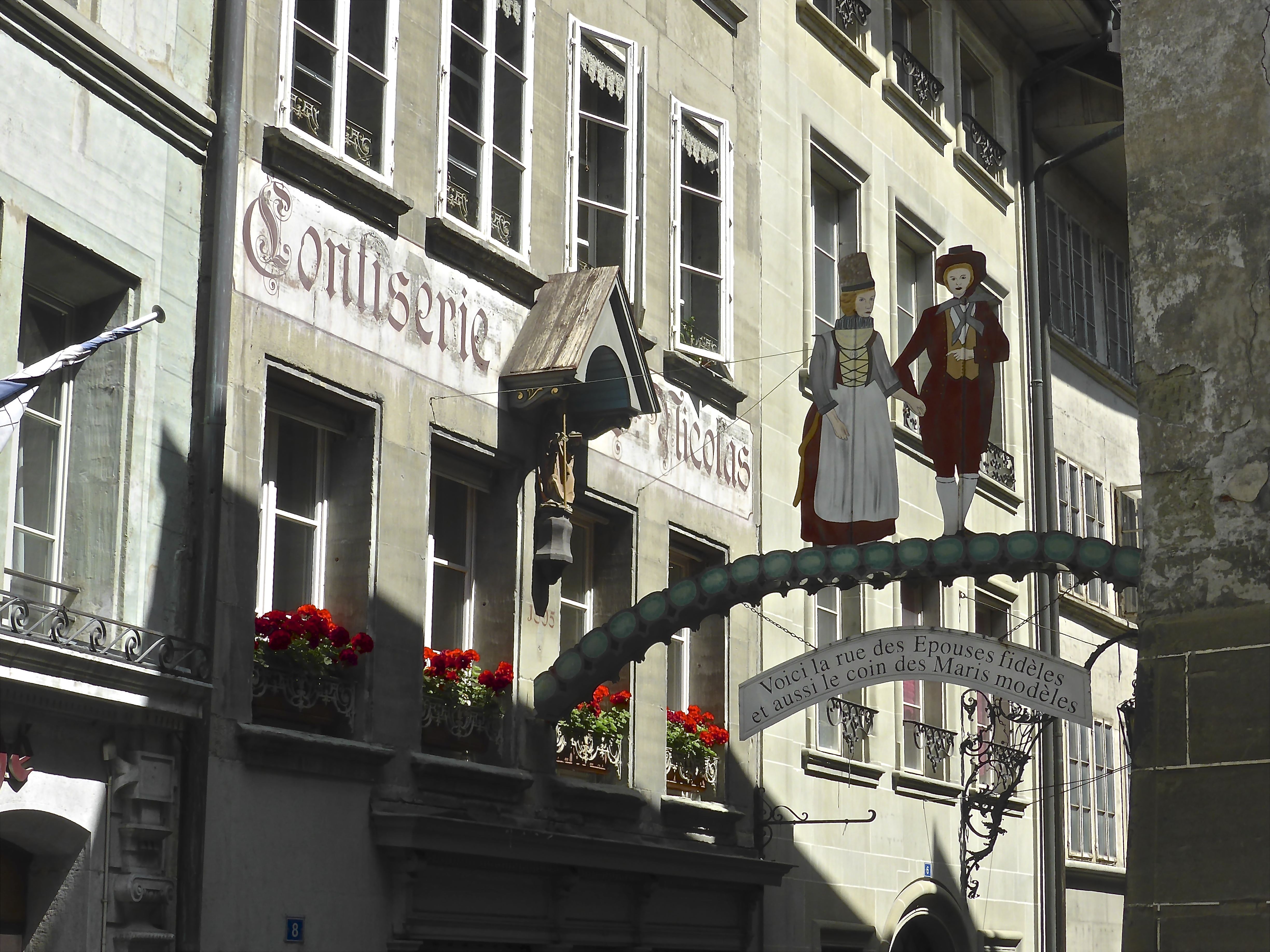Fribourg, old town: street of the faithful husbands and model wives