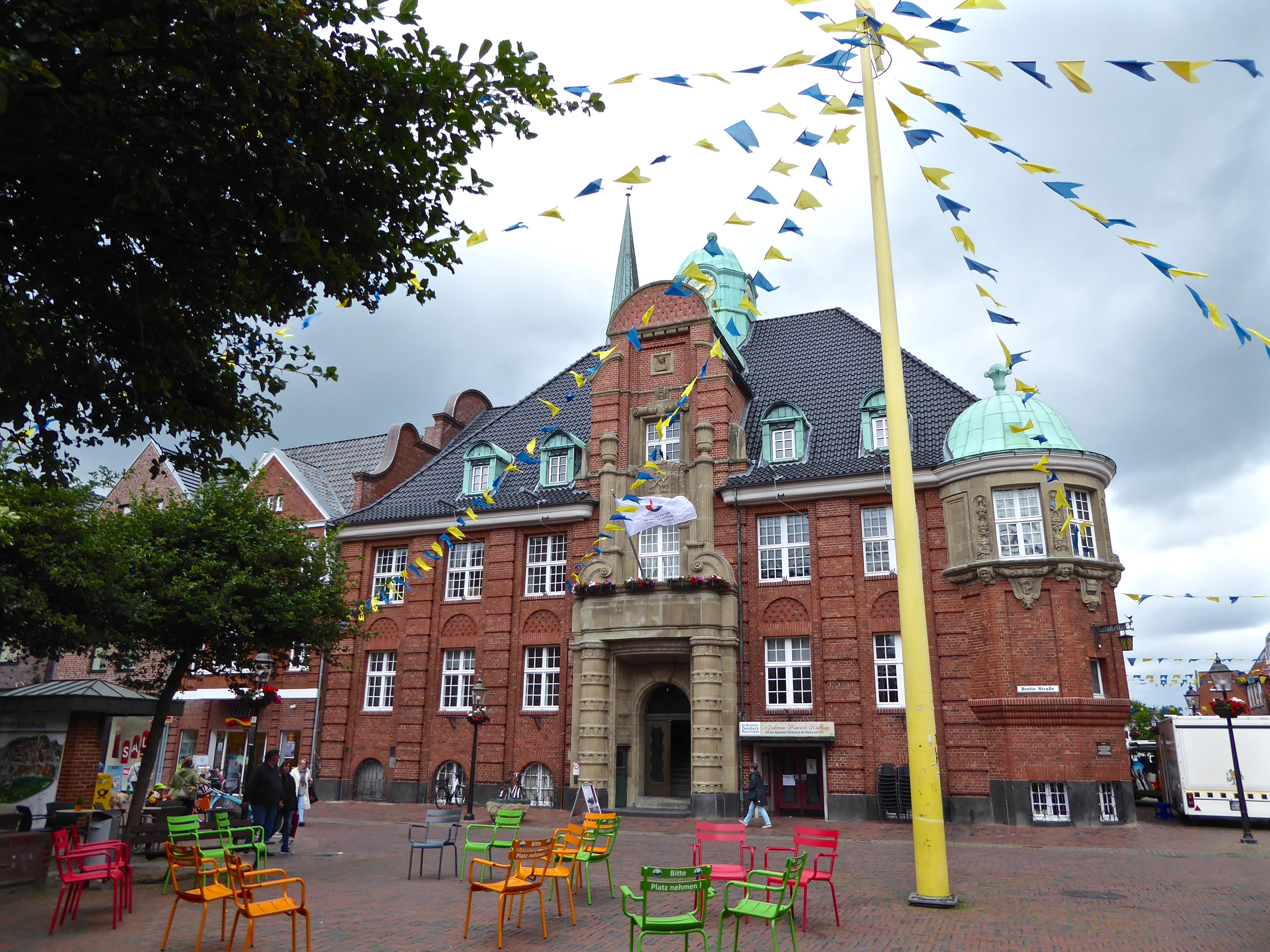 Buxtehude was a member of the Hanseatic League and it shows in the style of houses. Half-timbered and with Dutch-style gables, they huddle along the canal and picturesque streets of the old town. Some – few, it seems – are entirely original; many appear to have been reconditioned. On the main square sits the modest 1904 stone-and-brick townhall. Further on, the 12th century red-brick church, St Petri Kirche. On its north wall, is a memorial to the dead of the first world war, reminding passers-by that German families too paid a price for the conflict. Inside, the walls are white-washed, except for the arches, which have been left in their natural terracotta colour or painted yellow and green. We linger but the warden pointedly locks one of the doors and follows us around from a distance, a subtle way of letting us know that lunchtime is approaching.