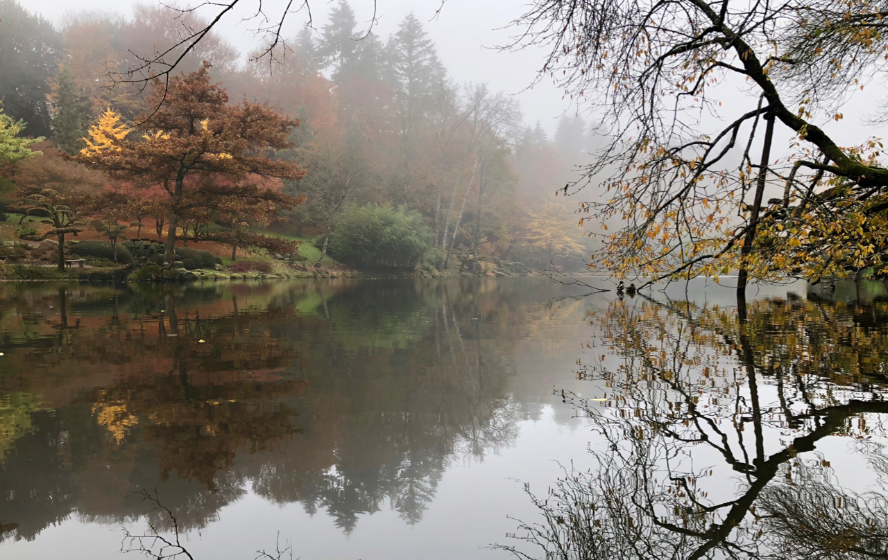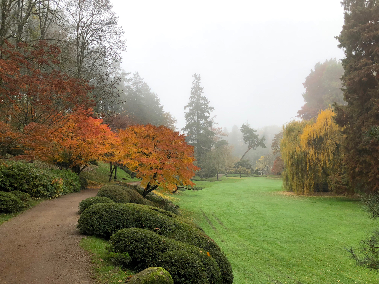 Here and there, you can still marvel at the deep scarlet leaves of the acers, but further away on the edge of the meadow, the fallen leaves of the gingkos form a thin carpet of gold on the ground.