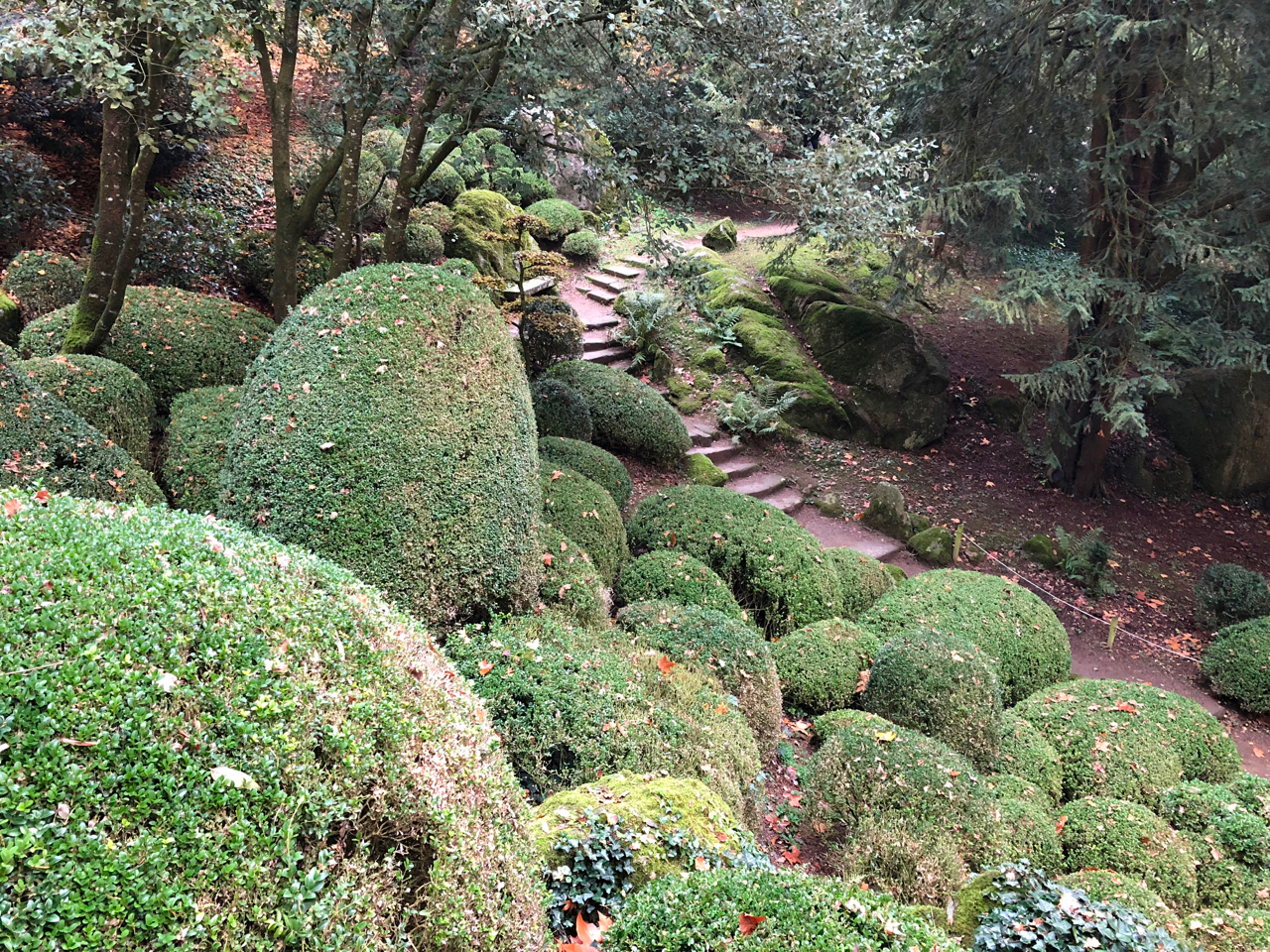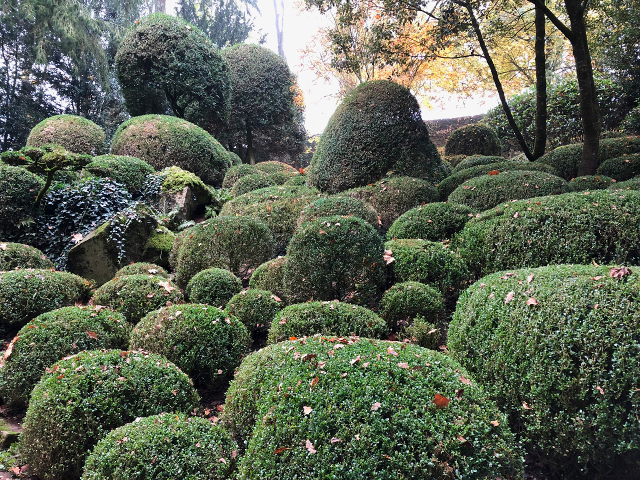 It’s in the cloud pruning of conifers and in the bauble shapes of the box hedge in the meditation garden on the hillside.