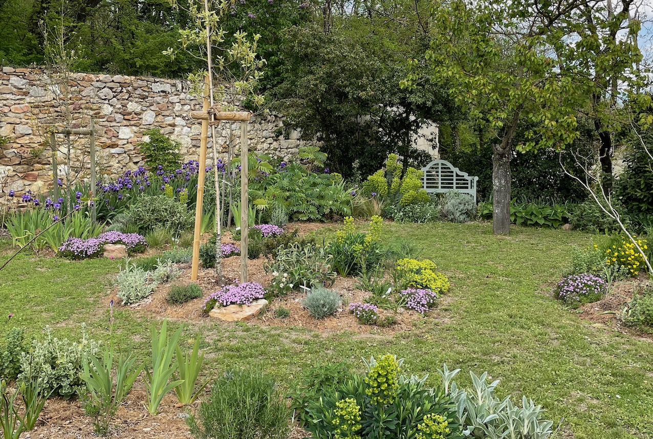 The brief for this project, in a region sharing similar climate conditions, was to transform a tired, high-maintenance area of lawn into a vibrant, colourful and sustainable space capturing the essence of the Luberon hills.