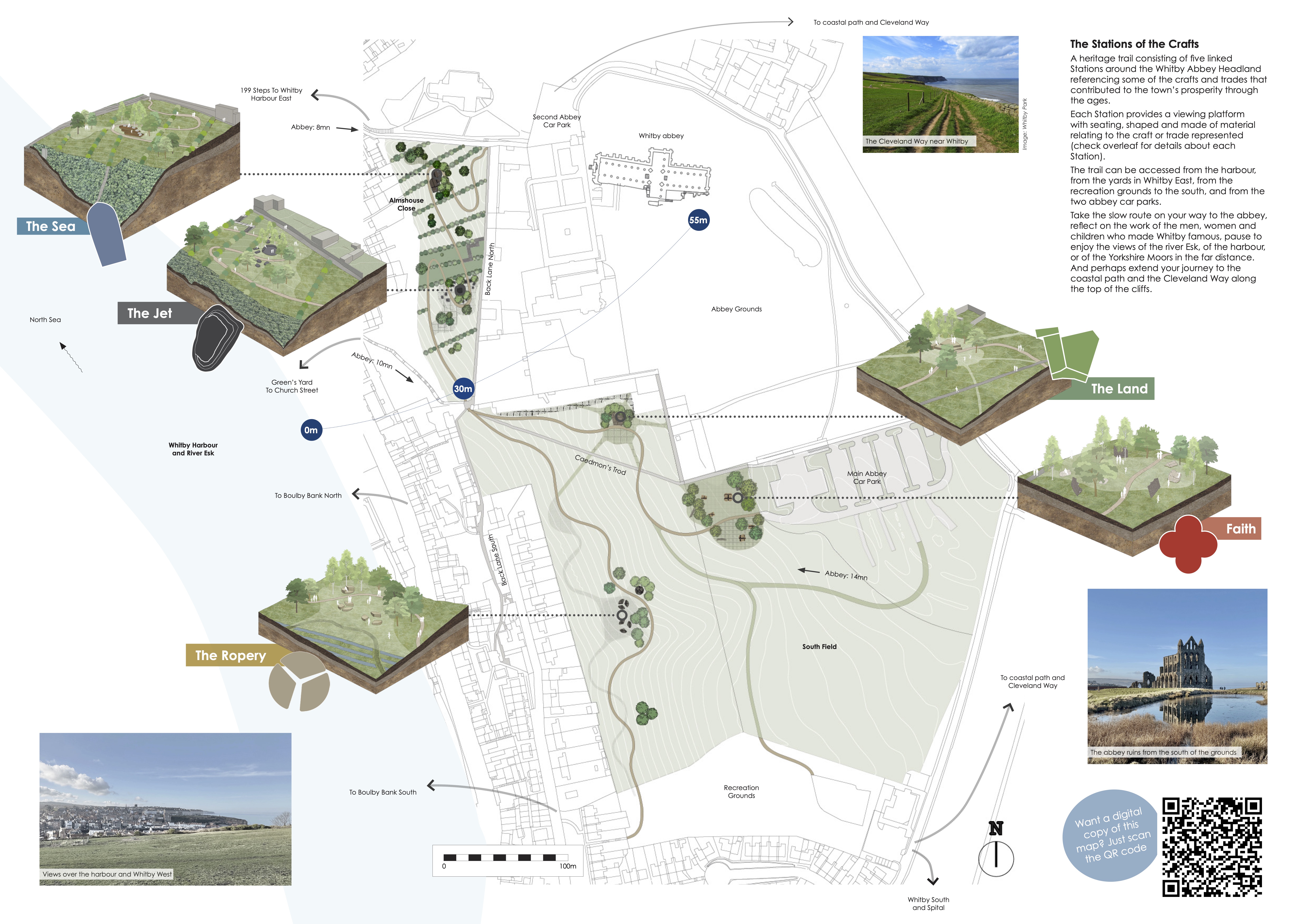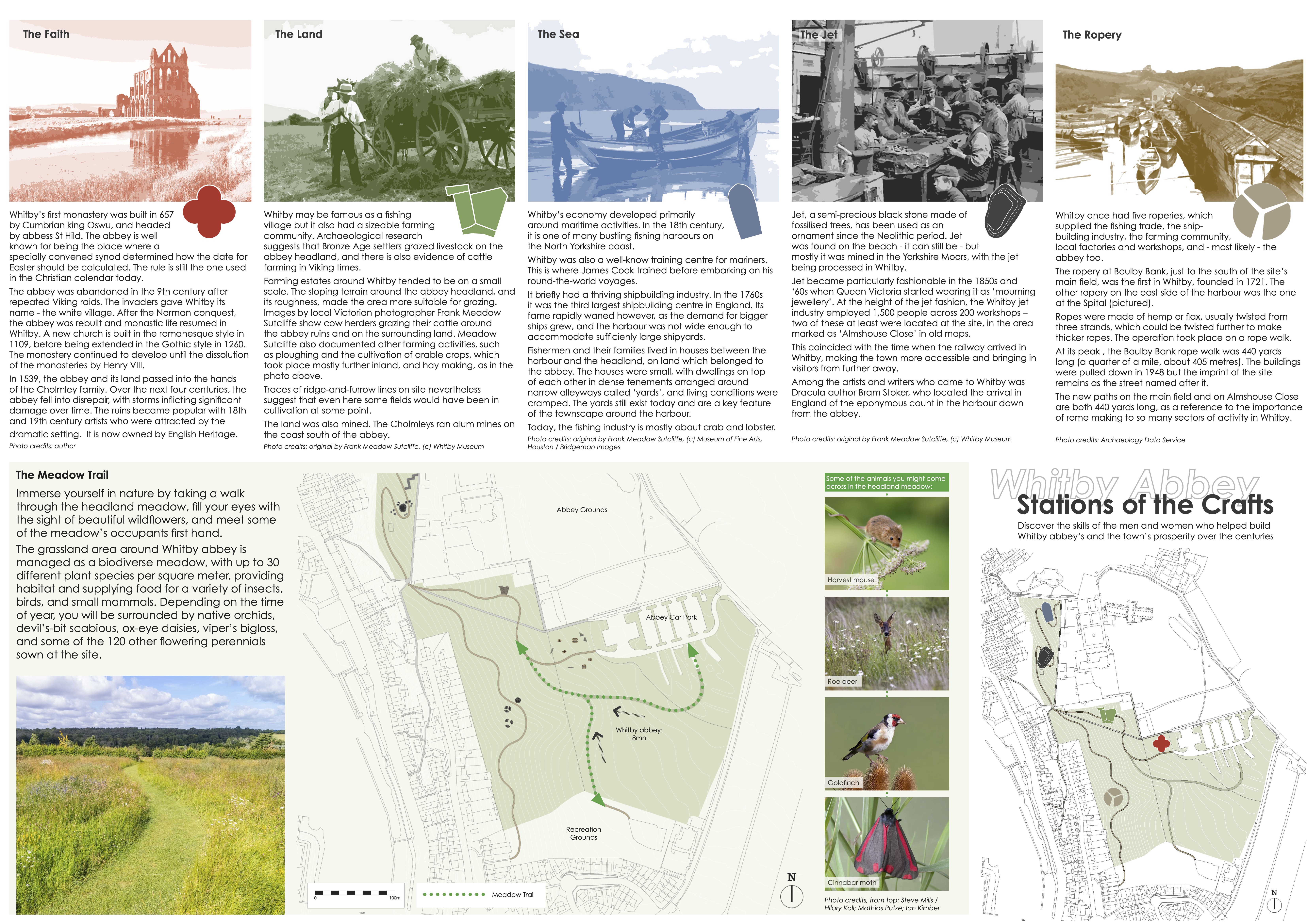 A heritage trail consisting of five linked Stations around the Whitby Abbey Headland referencing some of the crafts and trades that contributed to the town’s prosperity through the ages.